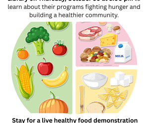 Comfort Food Community (CFC) will host an engaging program at the Pember Library on Thursday, October 30 beginning at 5:00 pm to introduce attendees to the organization’s mission and services that support local families.The presentation will highlight how CFC addresses food insecurity, strengthens the local food system, and connects neighbors to resources. Following the overview, staff will lead a healthy food demonstration, showcasing a simple, nutritious recipe that can be easily recreated at home. Participants will leave with practical tips, …