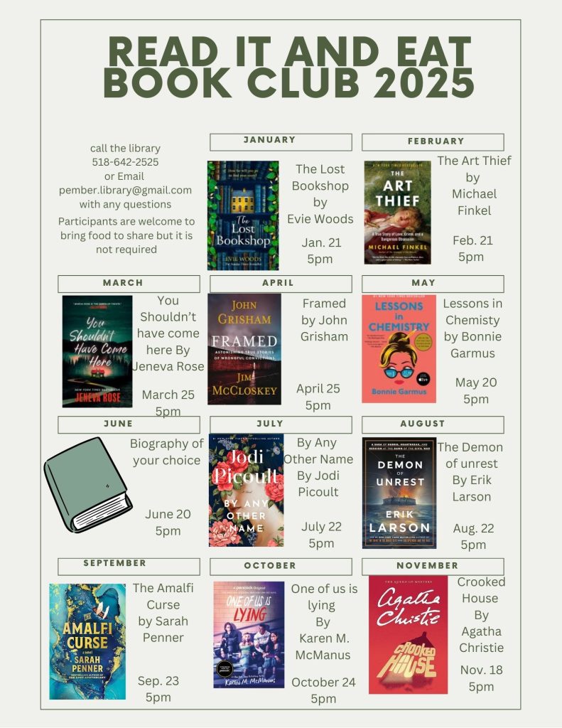HomeBooksUpdated book club dates for the rest of the year Updated book club dates for the rest of the year Books Events The Library KDesantisSeptember 25, 20250